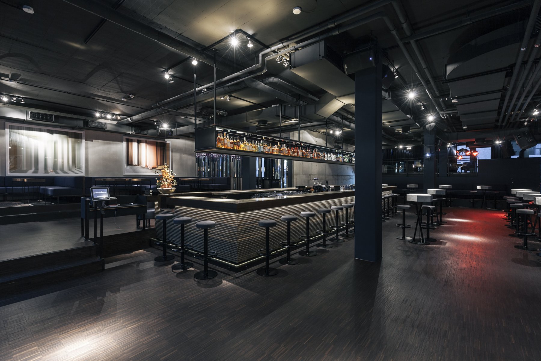 Auf 434 Quadratmetern und mehreren Ebenen, taucht man in kosmopolitisches, künstlerisches Ambiente hinter dunkelblauen Vorhängen in eine ganz eigene Welt ein. „Als Liebhaber des Theaters schaffe ich mir meine eigene Bühne“, so Geschäftführer El Sheik augenzwinkernd. „Sicherlich erlaubt es mir erst meine 16-jährige Erfahrung als Gastronom ein derartiges Konzept wie das Sir Walter zu realisieren. Hier lasse ich mich in der Raumgestaltung von Künstlern und Regisseuren wie Lars von Trier oder Peter Brook inspirieren. Mir geht es darum, dass die Gäste beim Betreten der Bar vergessen, wo sie sich gerade befinden. Dass sie abschalten können, mit allen Sinnen genießen. Wie bei einem klassischen Theaterbesuch taucht man im Sir Walter in eine eigene Welt ein und lässt den Alltag hinter sich.“