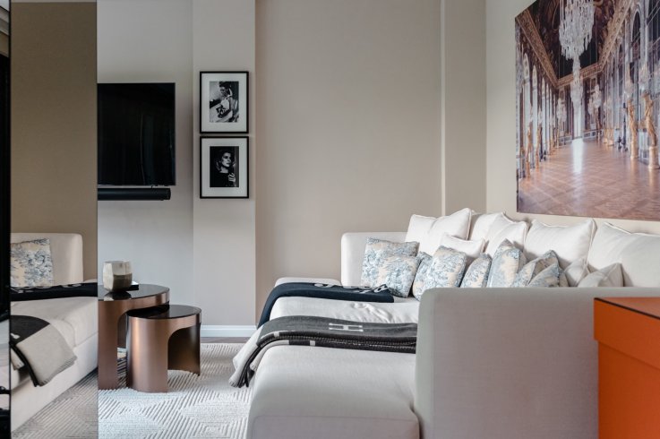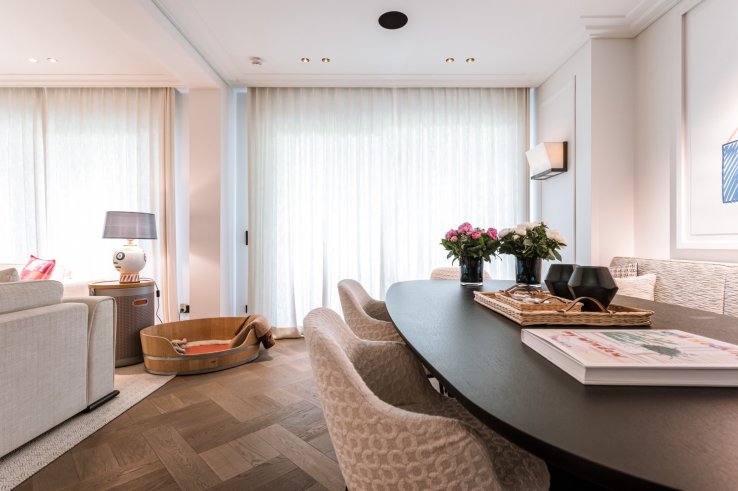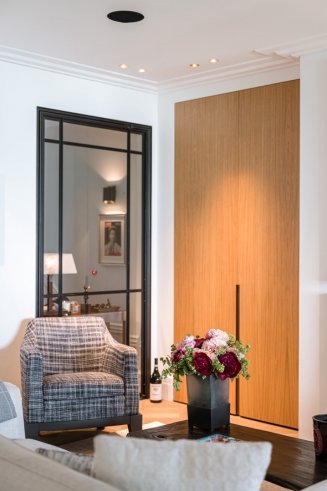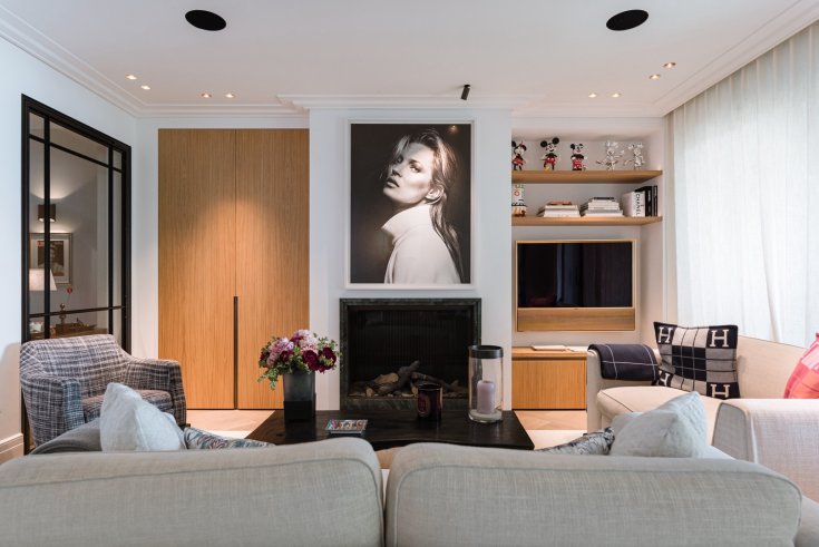 HYM High-End In-Ceiling Lautsprecher Flächenbündig, GRAY Speaker -Flächenbündig. Bang&Olufsen TV Contour Gold Tone Edition mit Beosound Stage Aktivsystem, Samsung TheFrame in der Küche und im Schlafzimmer. Sonos als Multiroom Audio an Garvan Endstufen. Sonance Invisible Speaker in der Ankleide. Outdoor Audio von Bose.